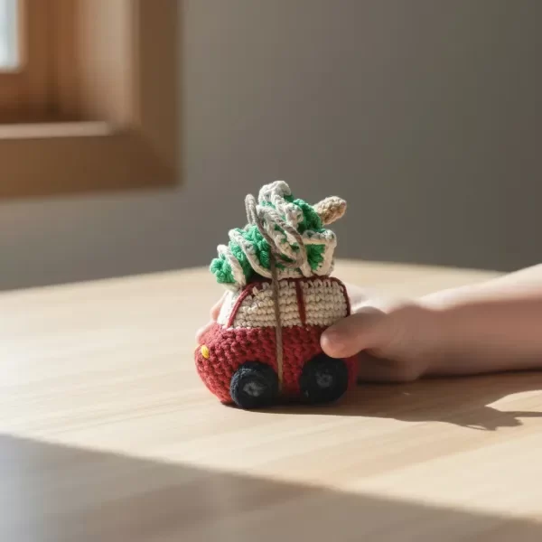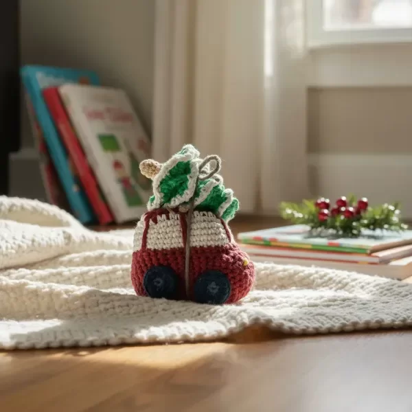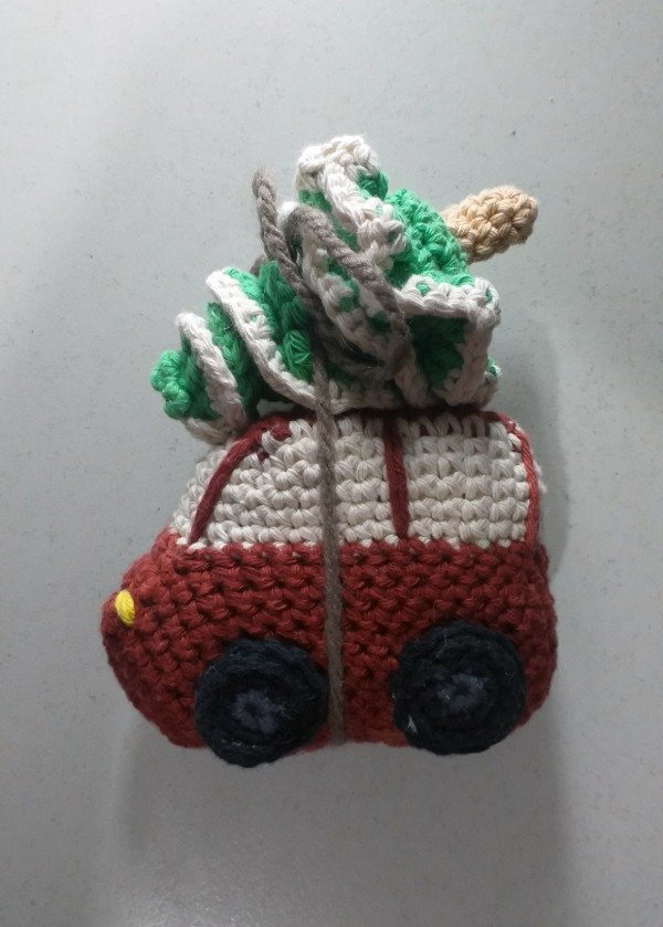 Auto con Pino / Árbol de Navidad tejido a Crochet con la técnica del Amigurumi.