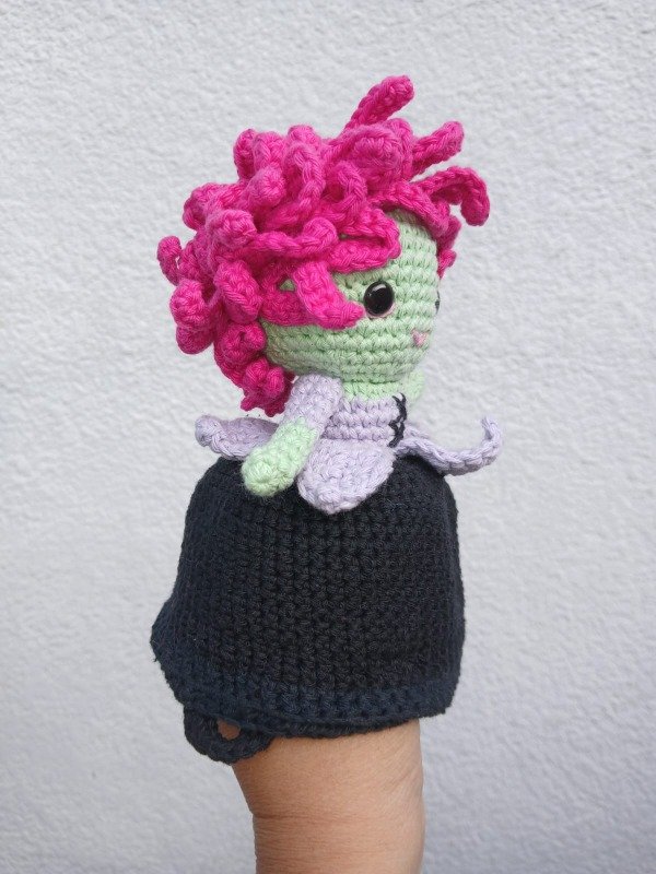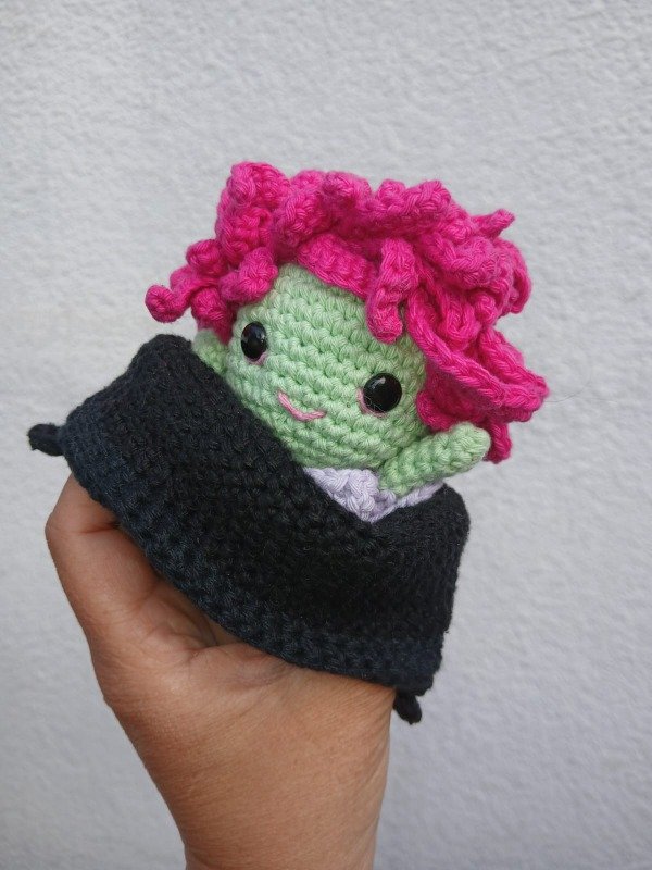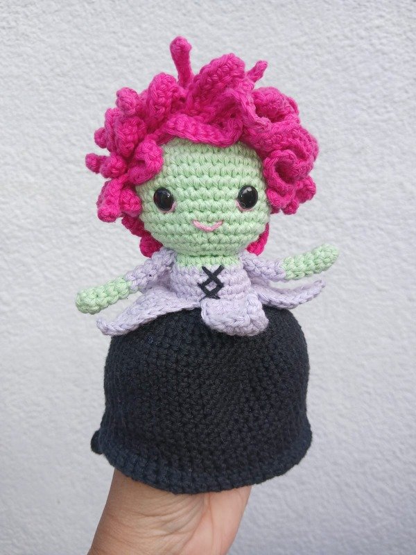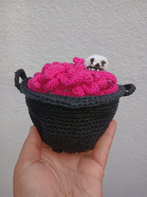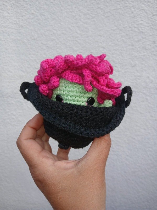 Bruja Reversible, cambia a Caldero. Tejida a Crochet con la técnica del Amigurumi.